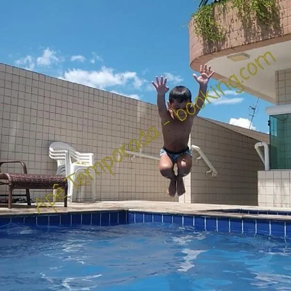 Casa com Piscina Canto do Forte - Praia Grande se encuentra en Praia Grande, a 15 min a pie de Praia Canto do Forte y a 2,2 km de Litoral Plaza Shopping, y ofrece piscina al aire libre y aire...