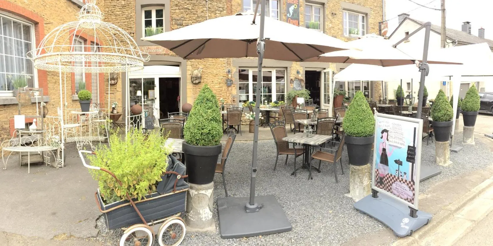 Auberge Chez Dikke Vriend, Chambres et taverne tiene salón de uso común, terraza, restaurante y bar en Chiny.