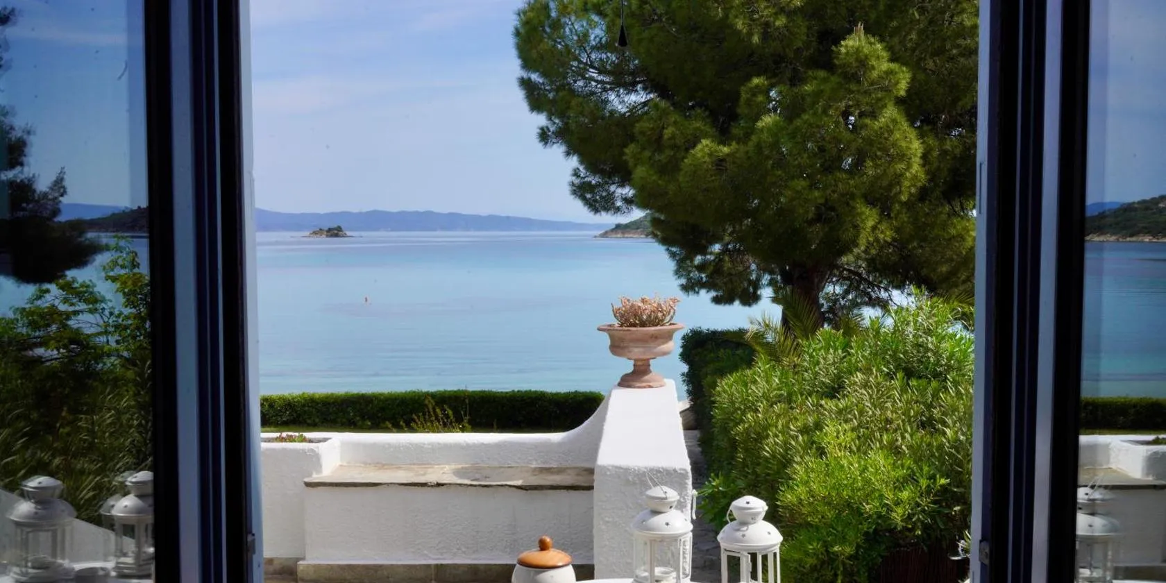ニキティビーチから徒歩6分のVilla Naiadaは、季節限定の屋外プール、庭、エアコン付きのユニット(バルコニー付)、無料WiFiを提供しています。敷地内に専用駐車場があります。...