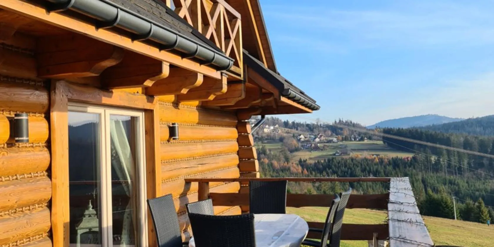 Osada Poli Koniaków - Panoramiczny Domek nr 5 z Prywatną Balią i Hydromasażem, que tiene vistas a la montaña, dispone de alojamiento con terraza y cafetera, y está a unos 19 km de Museum of Skiing.