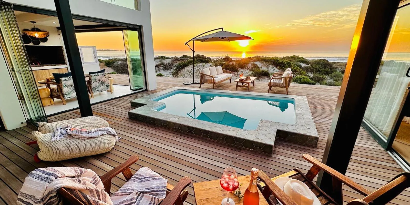 Shelley Point Estate Blue Avion Luxury Holiday Home Solar Powered, que tiene piscina al aire libre, jardín y zona de playa privada, dispone de alojamiento en St Helena Bay con wifi gratis y vistas al...