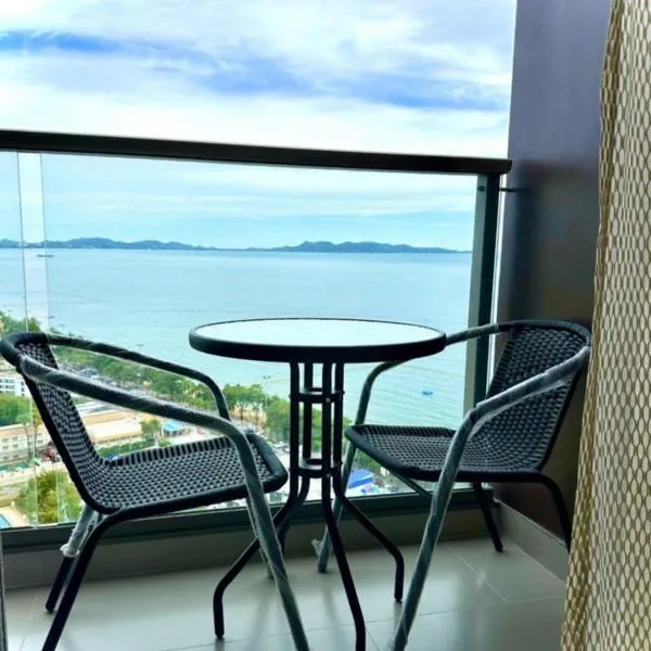 海の景色を望む2 Bedroom Condo R258 Veranda Pattaya Beachfrontはナ・ジョムティエンにある宿泊施設で、屋外プール、庭、専用ビーチエリア、テラスを提供しています。館内全域での無料WiFiを提供しています。
