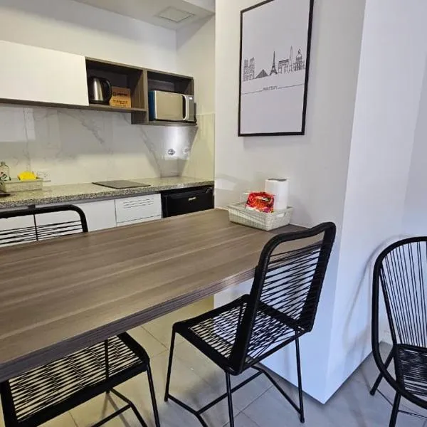 独立広場からわずか徒歩13分のModerno Loft - Piscina y solarium!はロサリオにある宿泊施設で、屋外プール、テラス、無料WiFiを提供しています。このアパートメントでの滞在中はバルコニーを利用できます。 ベッドルーム1室、薄型テレビ、ダイニングエリア、キッチン(冷蔵庫、オーブン付)が備わるエアコン付きのアパートメントです。