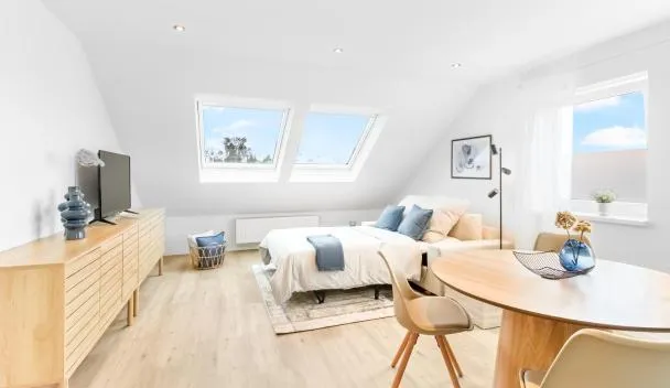 Roof-Suite 03 I Aufzug I Smart-TV I Balkon I WiFiはレーダ・ヴィーデンブリュックにあり、フェアー・ビーレフェルトまで26km、ビーレフェルト日本庭園まで33km、ビーレフェルト美術館まで34kmです。この宿泊施設では、バルコニー、無料専用駐車場、無料WiFiを提供しています。...