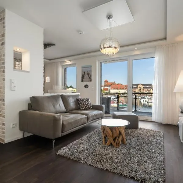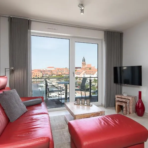Müritz Charme - Apartment in der Hafenresidenz mit Wasserblick & Kamin está en Waren y ofrece alojamiento con balcón y wifi gratis.