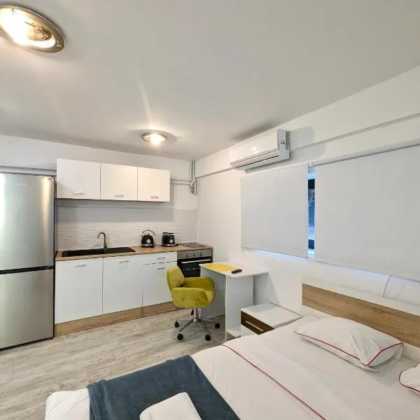 Two Studios in Central Sesvete se encuentra en Sesvete, a 8,2 km de Zoo de Zagreb y a 10 km de Parque Maksimir, y ofrece alojamiento con wifi gratis, aire acondicionado, jardín y salón de uso común.