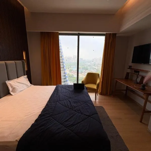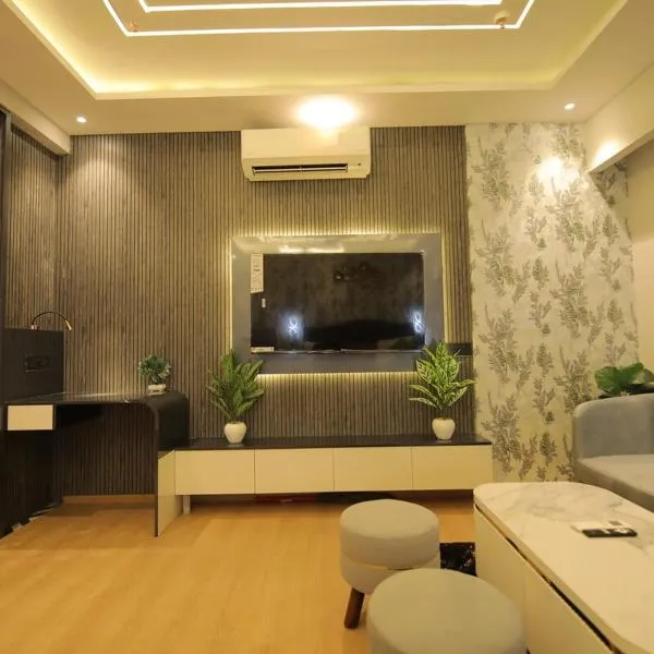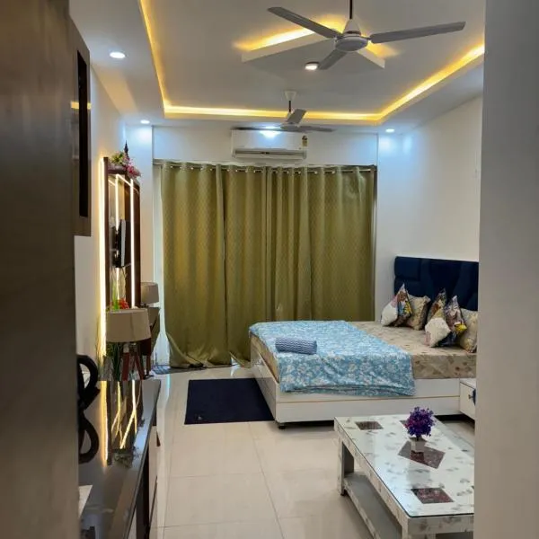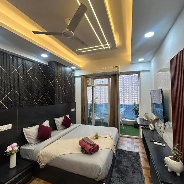 市街の景色を望むVaelora Stay Luxury Studio-Galaxy Blue Sapphire Plazaはガーズィヤーバードにある宿泊施設で、トゥグラカーバード・フォートから24km、アークシャルダーム寺院から27kmです。このアパートメントでは、無料専用駐車場、ルームサービス、無料WiFiを提供しています。