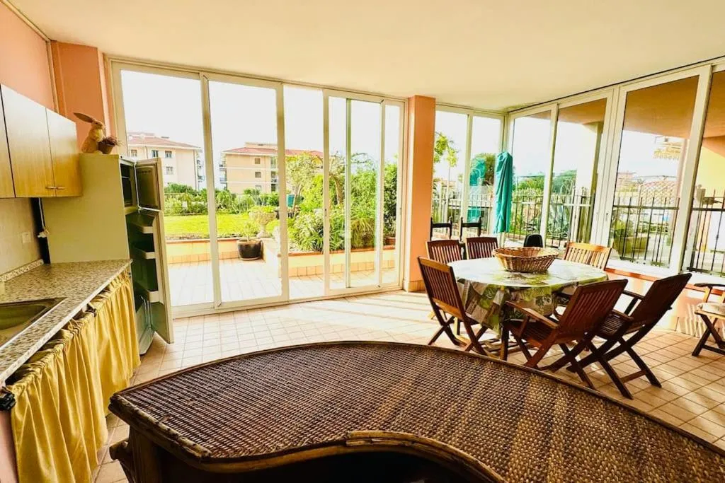 Appartamento con giardino privato, que tiene vistas al mar, dispone de alojamiento con balcón y cafetera, y está a unos 8 min a pie de Playa de Santo Stefano al Mare.