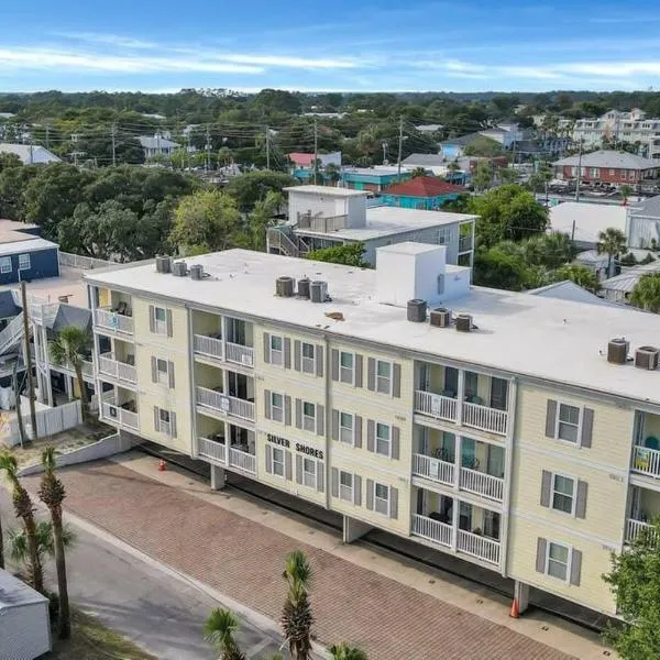 Salt & Sea Inn Unit B-1 Bed 1 Ba Condo w/Poolはタイビーアイランドのビーチフロントにある宿泊施設で、タイビーアイランドビーチまで徒歩数分、サバンナ・ベンド・マリーナまで22kmです。専用プール、無料WiFi、無料専用駐車場を提供しています。 ベッドルーム1室、薄型テレビ、キッチン(冷蔵庫、食器洗い機付)が備わるエアコン付きのアパートメントです。