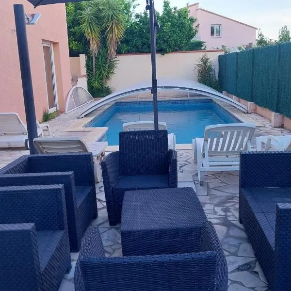 Located in the heart of Torreilles village, La Vieille Demeure features accommodation in a guest house offering free Wi-Fi throughout and a heated, salt-water pool.