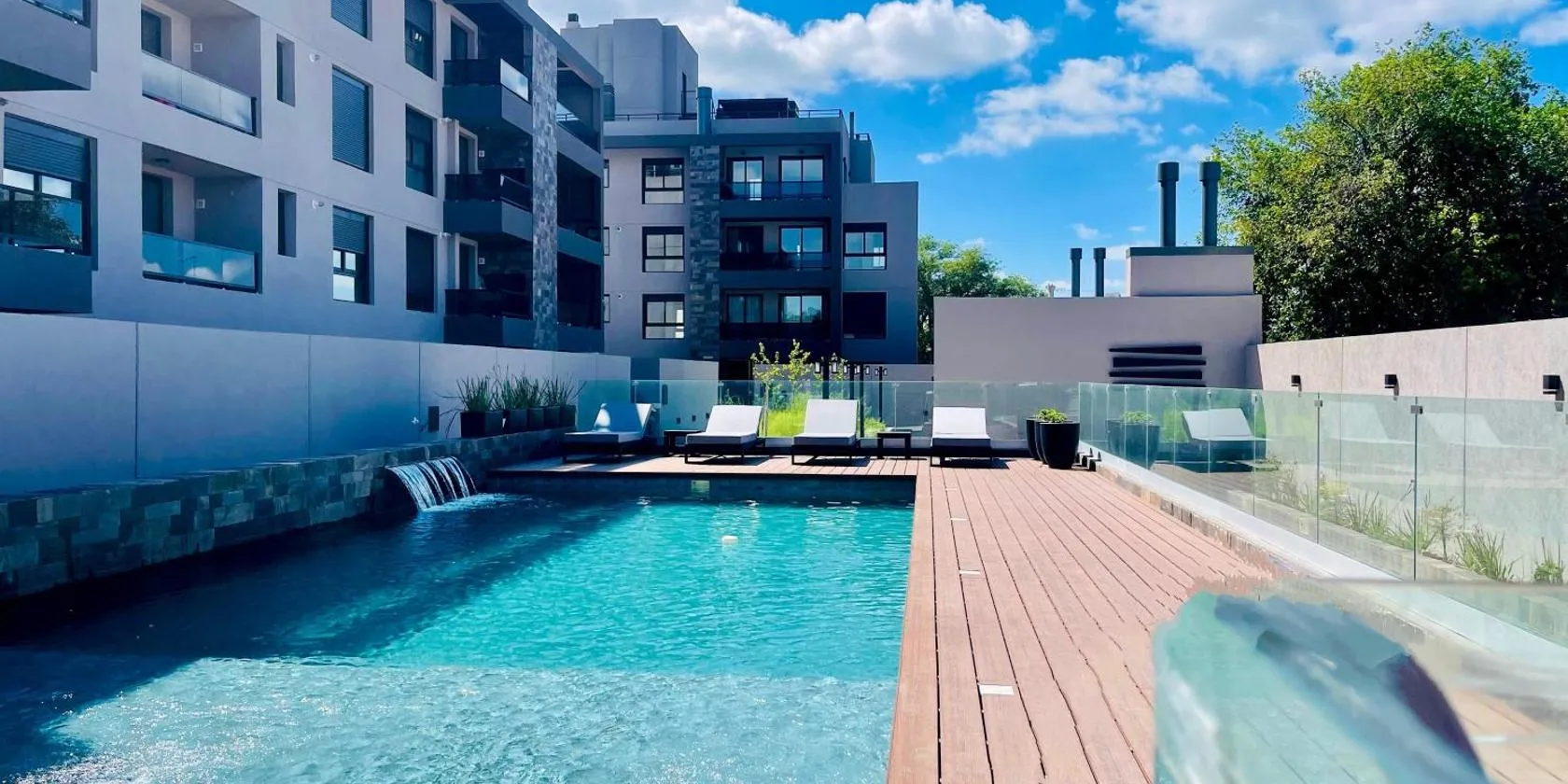 LUMINOSO piso con jacuzziはウルグアイ橋から約36kmの宿泊施設で、屋外プールと無料WiFiを提供しています。市庁舎から36kmの宿泊施設で、庭と無料専用駐車場を提供しています。 庭の景色を望むテラスのあるエアコン付きのアパートメントで、ベッドルーム1室、設備の整ったキッチンがあります。薄型テレビが備わります。