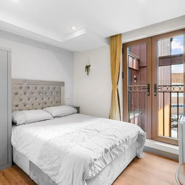 Modern Studio with Balcony Godino Hotel Ilford se encuentra en Ilford, a 2,2 km de Estación de metro Gants Hill y a 2,9 km de Estación de metro Barking, y ofrece alojamiento con wifi gratis, aire...