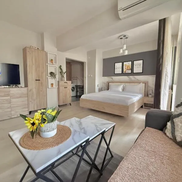 Skopje Plaza Apartment está en Skopje, a 15 min a pie de Puente de Piedra y a pocos pasos del centro, y ofrece alojamiento con aire acondicionado, wifi gratis y restaurante.