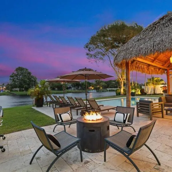VacationSunwind Delray home! Water Front Pool Dock near Beach, que cuenta con vistas a la piscina, ofrece alojamiento con piscina al aire libre y patio a unos 2 km de Estación de tren de Villa Rica.