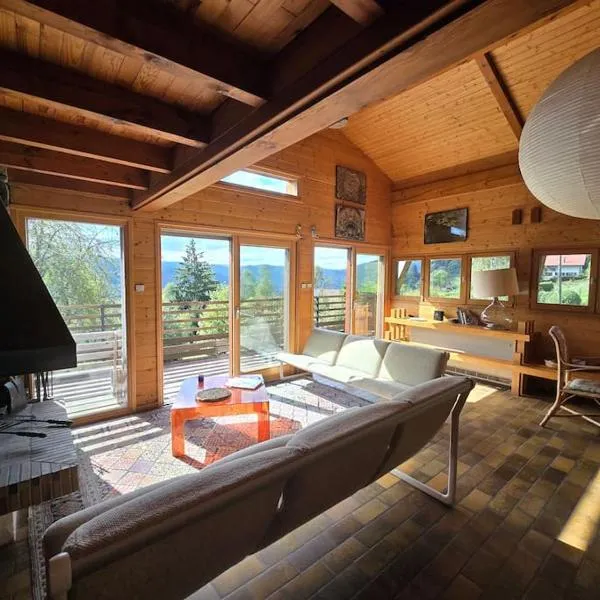 Chalet du saut de la bourrique, plain-pied, SPA couvert, terrain clôturé, que cuenta con terraza, dispone de alojamiento en Gérardmer con wifi gratis y vistas a la montaña.