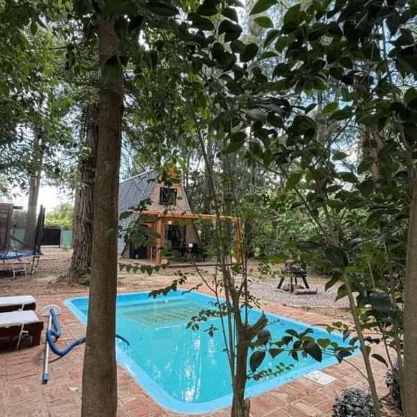 ヘネラル・ロドリゲスにあるHermosa Cabaña Alpina Zona Oesteは、プールの景色を望むユニット(無料WiFi利用可)、季節限定の屋外プール、庭、共用ラウンジを提供しています。専用プールと無料専用駐車場を提供しています。 バルコニー、ベッドルーム2室、リビングルーム、設備の整ったキッチン(冷蔵庫、オーブン付)が備わる別荘です。薄型テレビが備わります。