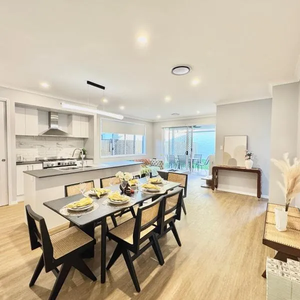 AlgesterにあるModern Family Home in Peaceful Pallara 4BR Comfortは、エアコン付きのユニット(バルコニー、無料WiFi付)を提供しています。この別荘では庭を提供しています。