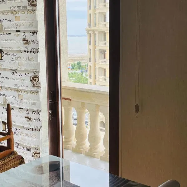 海の景色を望む3 room apartmentはバルコニーとポット付きのユニットを提供しており、Fountains Squareまで約32kmです。バクー駅から31kmの場所にあるエアコン付きの宿泊施設で、無料WiFiと敷地内の専用駐車場を提供しています。