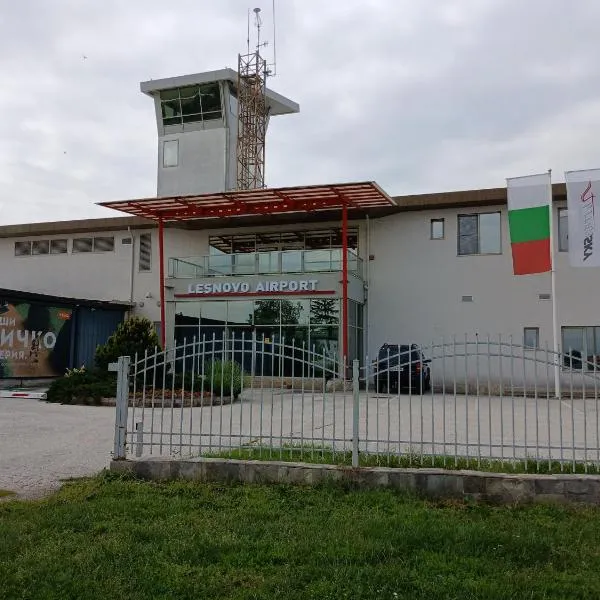 Хотел Летище Лесново, que cuenta con salón de uso común, terraza y vistas a la ciudad, se encuentra en Lesnovo, a 29 km de Arena Armeets.
