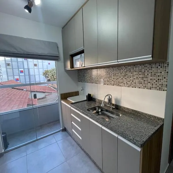 Sinta-se em casa. Está en Barbacena, en la región de Minas Gerais, y tiene balcón. Este apartamento dispone de parking privado gratis, recepción 24 horas y wifi gratis.