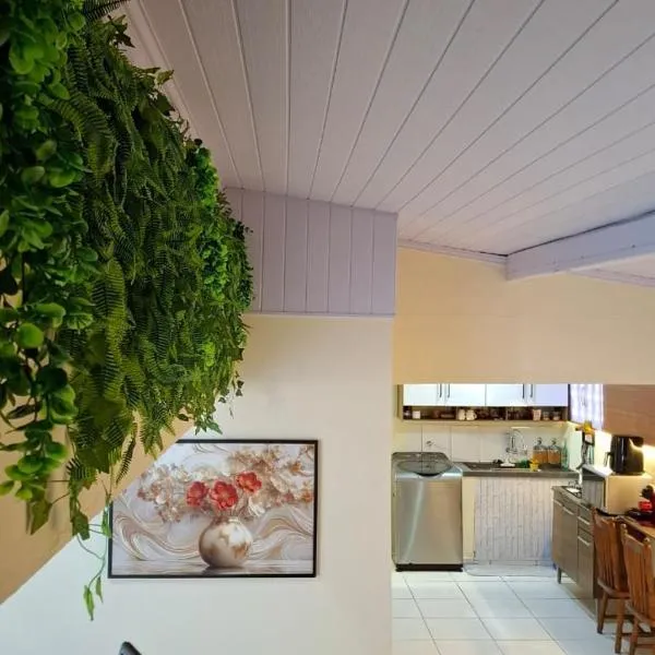 ImbetibaにあるCasa completa com quintal a 500m da praia | MAAL02はプライア・ド・ペカードから1.9kmで、バルコニー、庭、無料WiFiを提供しています。Municipal Theatherから6.1km、Marechal Hermes Fortから6.9kmの宿泊施設で、庭の景色が望めます。