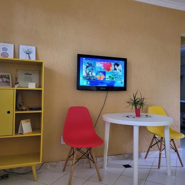 Casa Amarela em Cacha Pregos está en Vera Cruz de Itaparica, a 2 min a pie de Praia de Cacha Pregos, y ofrece alojamiento con wifi gratis, aire acondicionado y jardín. Ofrece patio y terraza.