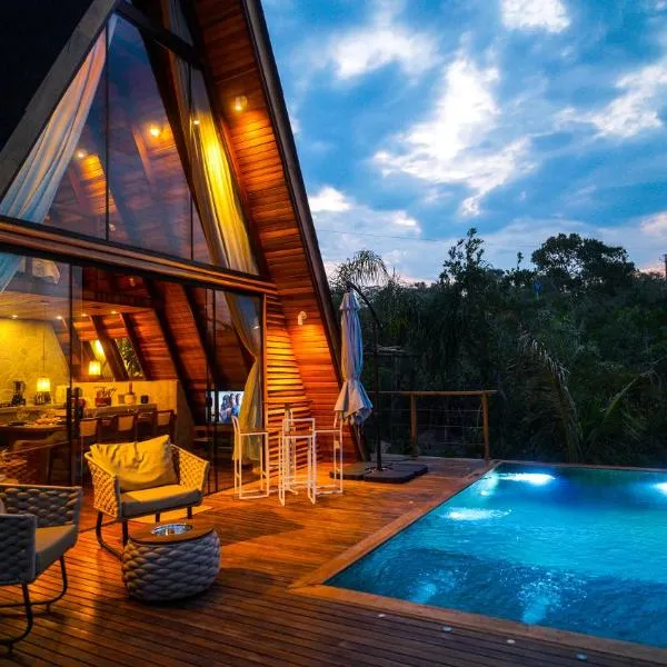 サン・ジョルジェにあるBangalô São Jorge - Ecohospedagem Canto da Corujaはムーン・バレーから8.5km以内、Moon Valleyから8.5km以内で、無料WiFi付きのユニット、エアコン、屋外プール、庭を提供しています。アウト・パライーゾ・デ・ゴイアス・バスステーションから39kmで、ルームサービスを提供しています。...
