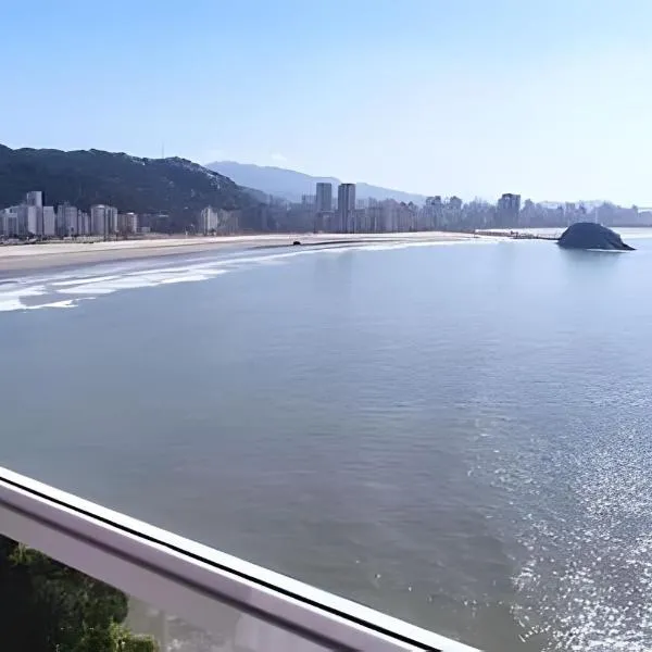 Kitnet Vista Mar em São Vicente - Charme e Conforto se encuentra en São Vicente, a solo 2 km de Praia do Gonzaginha, y ofrece alojamiento con vistas al mar, wifi gratis y parking privado gratis.