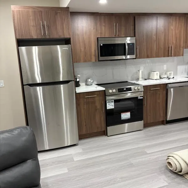 Entire guest suite in Cochrane, ABはコクランにある宿泊施設で、クローチャイルド・ツイン・アリーナまで27km、マクマーン・スタジアムまで34km、デヴォニアン・ガーデンズまで40kmです。館内全域での無料WiFiと敷地内の専用駐車場を提供しています。 Entire guest suite in Cochrane,...