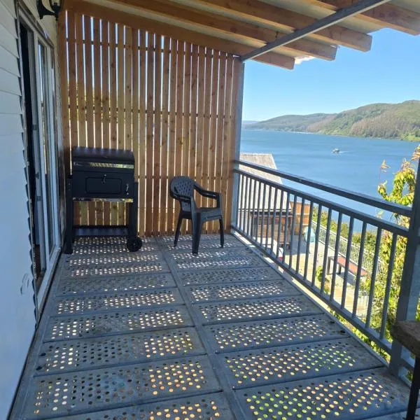 Cabaña nueva con vista al rio N3はバルディビアにあります。この別荘には庭、無料専用駐車場があります。 川の景色を望むテラス、ベッドルーム2室、リビングルーム、薄型テレビ、設備の整ったキッチン(冷蔵庫、電子レンジ付)、バスルーム(シャワー付)1室が備わる別荘です。 近隣ではフィッシングを楽しめます。 ピチョイ空港まで38kmで、有料空港シャトルサービスを利用できます。