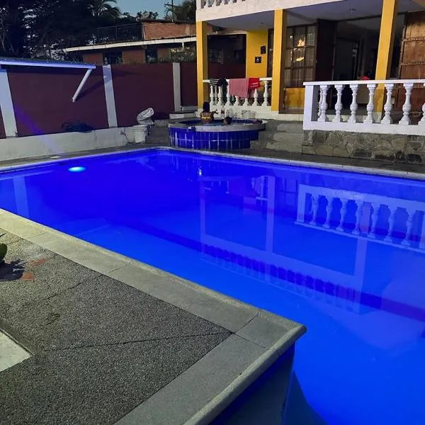 Hermosa y lujosa cabaña familiar, que cuenta con piscina al aire libre, jardín y salón de uso común, ofrece alojamiento en Chachagüí con wifi gratis y vistas a la montaña.