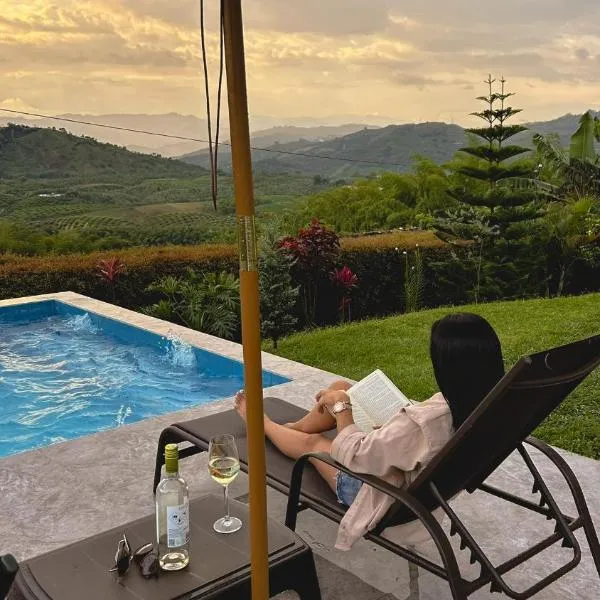 Cabaña Tierra Verde eje Cafetero, que tiene piscina al aire libre, jardín y terraza, dispone de alojamiento en Manizales con wifi gratis y vistas a la montaña.