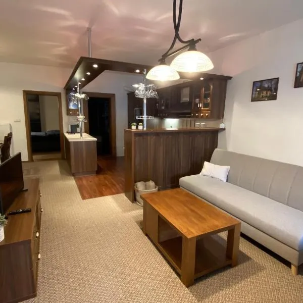 Apartman Modry dum está a 46 km de Basílica de San Procopio y a 2 min a pie de Castillo de Vranov nad Dyjí, en Vranov nad Dyjí. Ofrece alojamiento con aire acondicionado, vistas al río y wifi gratis.