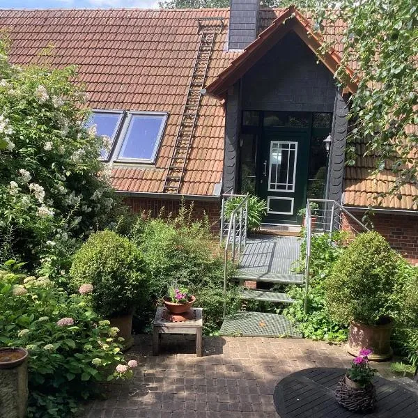 Gemütliche Wohnung auf dem Land, que tiene terraza, ofrece alojamiento en Rosendahl con wifi gratis y vistas al jardín.