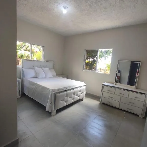 Hermosa Casa en Juana Vicenta Samanaはサンタ・バーバラ・デ・サマナにあります。プエブロ・デ・ロス・ぺスカドレスから27kmの宿泊施設で、庭と無料専用駐車場を提供しています。 独立したベッドルーム2室、リビングルーム、設備の整ったキッチン(冷蔵庫、コンロ付)、バスルーム1室が備わるエアコン付きの別荘です。 サマナ・エル・カーテイ国際空港まで42kmです。