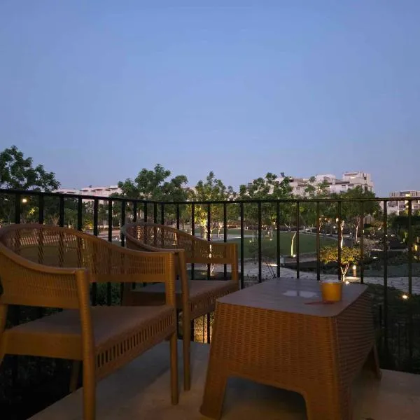 Cozy ground 1 BD apt in New Giza, que tiene terraza, dispone de alojamiento en Kafr Abū ʼumaydah con wifi gratis y vistas al jardín.