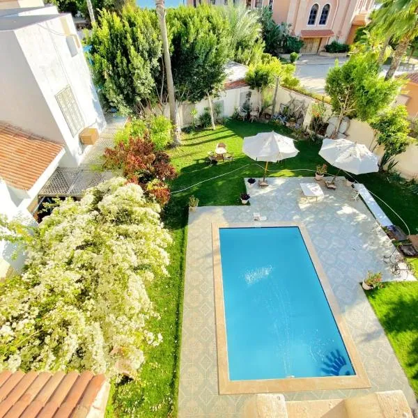 イスマイリアにあるVIP villa Aliは、バルコニーが備わるエアコン付きのユニットを提供しています。このヴィラでは、無料専用駐車場、ルームサービス、無料WiFiを提供しています。 ベッドルーム1室、バスルーム3室、ベッドリネン、タオル、衛星チャンネル付き薄型テレビ、ダイニングエリア、設備の整ったキッチン、庭の景色を望むテラスが備わるヴィラです。バスルームにはビデとシャワーが備わります。...