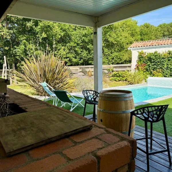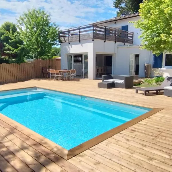 Arès, Villa Mapouchet, piscine está en Arès, a solo 2,2 km de Playa de Arés, y dispone de alojamiento con piscina de temporada al aire libre, salón de uso común, bar y wifi gratis.