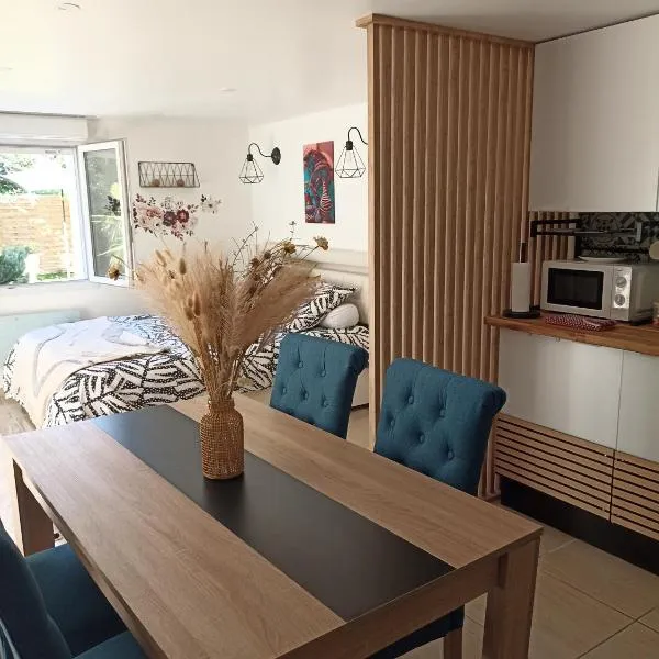 Charmant studio à 10 min de Lyon es un alojamiento con jardín y terraza que está en Miribel, a 13 km de Estación de tren de Part-Dieu, a 13 km de Estadio des Lumieres y a 13 km de LDLC Arena.