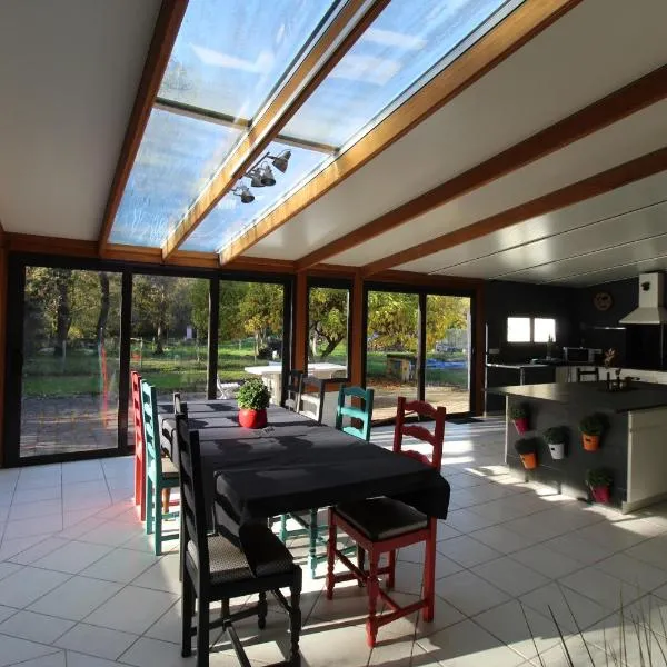 庭の景色を望むPetite maison en Brière.はDongesにあります。テラスを提供しており、ヘリテージ・ミュージアム・エコミュゼまで18km、ラ・ボール・エスクブラック駅まで32kmです。サン・ナゼール駅から17kmの宿泊施設で、庭と無料専用駐車場を提供しています。...
