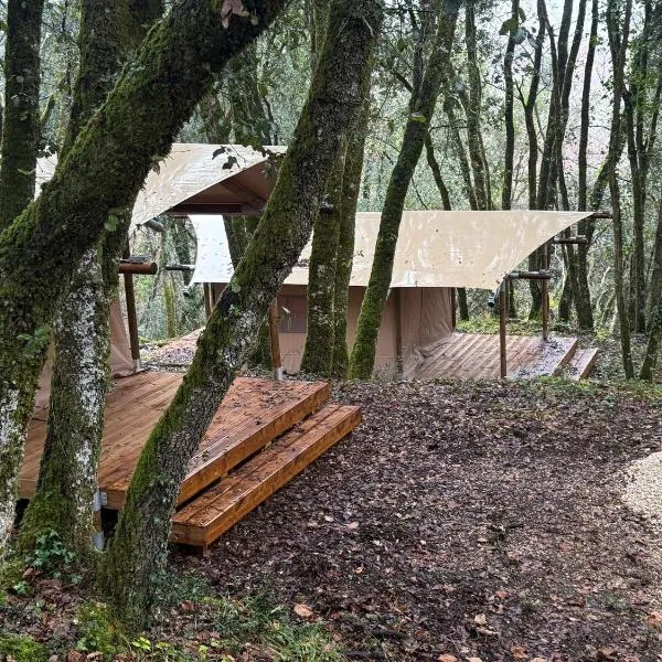 Cabanes hobbit et Figuiers está en Eyvignes-et-Eybènes y dispone de vistas al jardín, bicicletas gratis, piscina al aire libre, jardín, salón de uso común y terraza.