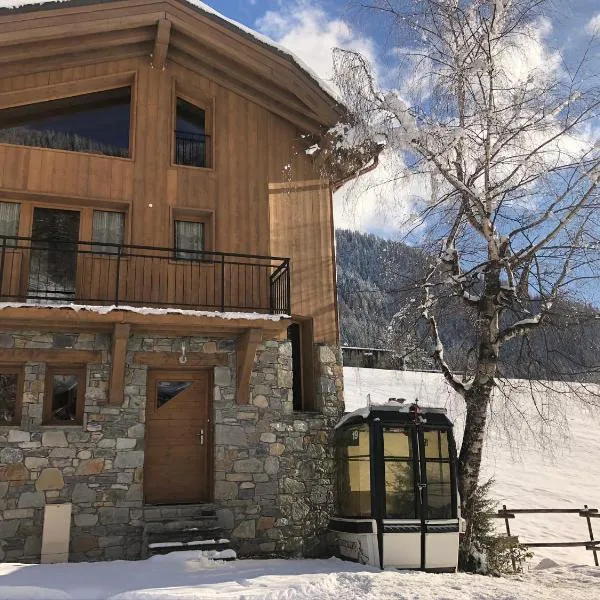 山の景色を望むChalet des Trappeurs Coeur Vanoise 15 personsはシャンパニー・アン・ヴァノワーズにある宿泊施設で、無料WiFiを提供しています。アルベールビル・オリンピックホールから46kmの宿泊施設で、庭と無料専用駐車場を提供しています。