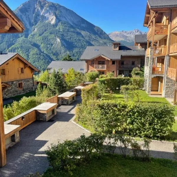 ラ・プラーニュにあるChez Angélique et Romain - Appartement agréable au pied des pistesは、専用プールを提供しています。このアパートメントには無料専用駐車場があり、周辺エリアではスキーやスカッシュなどのアクティビティを楽しめます。