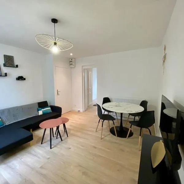 クレイユにあるCharmant 3 pièces gare de Creilは、庭の景色を望むユニット(無料WiFi利用可)とテラスを提供しています。シャンティイ・グヴュー駅から12kmの宿泊施設で、庭と無料専用駐車場を提供しています。 ベッドルーム2室、リビングルーム、設備の整ったキッチン(冷蔵庫、コーヒーメーカー付)、バスルーム(シャワー、ヘアドライヤー付)1室が備わるアパートメントです。