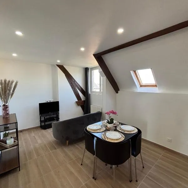 LaignevilleにあるLa Perle de Laigneville - Idéal pro - Netflix - Proche Parc Astérix & Chantilly - Parking public gratuit - Wifiはシャンティイ・グヴュー駅から15km、ドメンヌ・ド・シャアリから29kmで、無料WiFiや薄型テレビなどの設備が備わるユニットを提供しています。