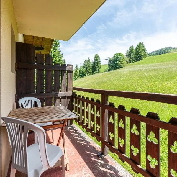 Studio 17 - Le Tetras, que cuenta con vistas a la montaña, dispone de alojamiento con balcón y cafetera, y está a unos 25 km de Halle Olympique d'Albertville.