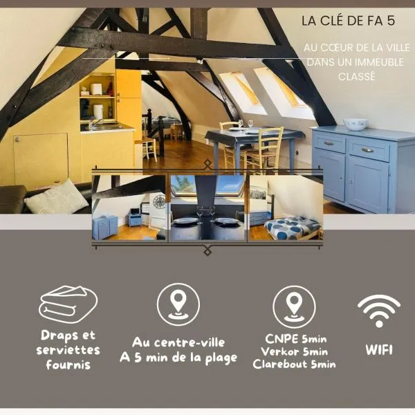 La clé de Fa 4 meublé cosy au coeur de la cité Vauban se encuentra en Gravelines, a 2,3 km de Plage de Gravelines y a 22 km de Estación de tren de Dunkerque, y ofrece alojamiento con equipamiento como...