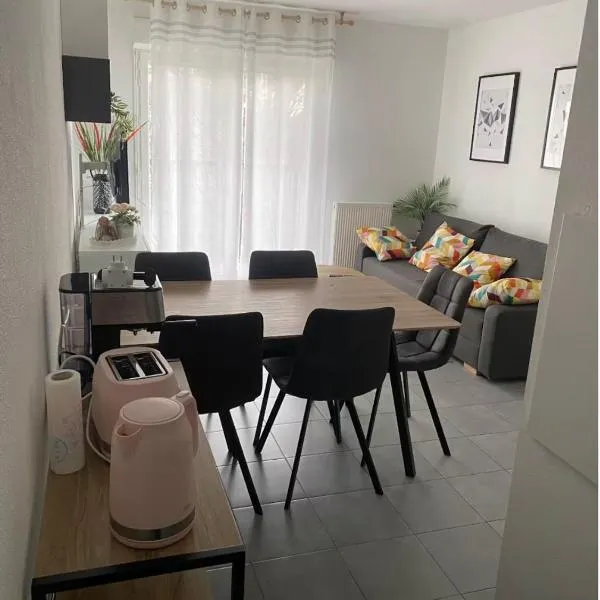 Le cocooningはベテビーチから2.2km以内、ラ・コクシネルから31km以内で、無料WiFiとテラスを提供しています。2021年築のアパートメントで、キッド・パークから31km、ボルドー・ペサック動物園から36kmです。 ベッドルーム1室、簡易キッチン(冷蔵庫、オーブン付)、バスルーム(シャワー、ヘアドライヤー、洗濯機付)1室が備わるアパートメントです。