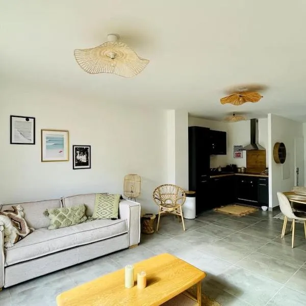 庭の景色を望むMaison landaise moderne avec piscine chauffée et spaは季節限定の屋外プール、共用ラウンジ、バーを提供する宿泊施設で、クーラン・ドゥシェ自然保護区まで約21kmです。この別荘では、専用プール、庭、バーベキュー施設、無料WiFi、無料専用駐車場を提供しています。...