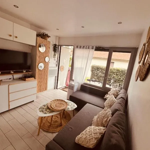 庭の景色を望むAppartement Lit et Mixeはリ・エ・ミックスにある宿泊施設で、クーラン・ドゥシェ自然保護区から21km、ムリエ・ゴルフ・コースから27kmです。この宿泊施設では、バルコニー、無料専用駐車場、無料WiFiを提供しています。 テラス、ベッドルーム2室、リビングルーム、設備の整ったキッチン(冷蔵庫、食器洗い機付)が備わるアパートメントです。
